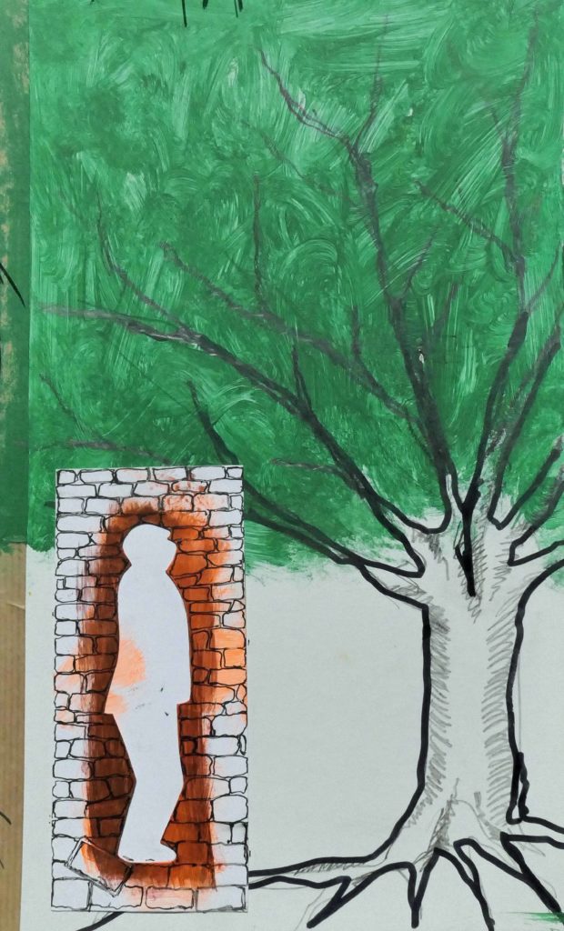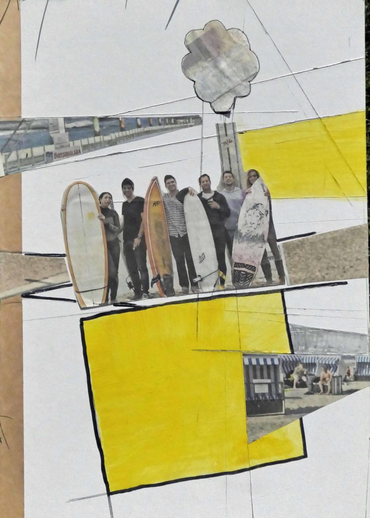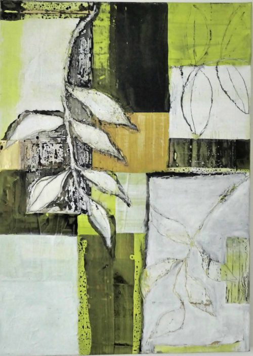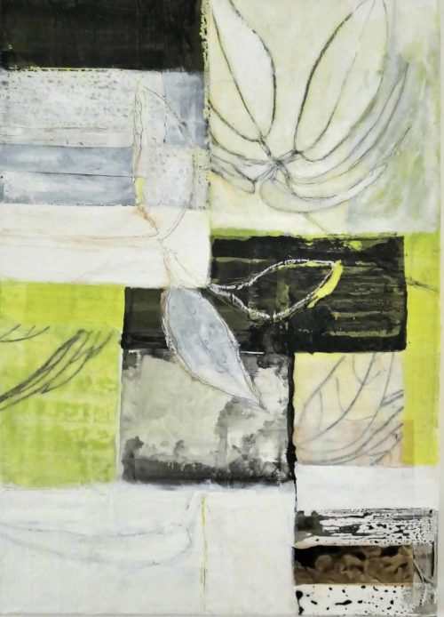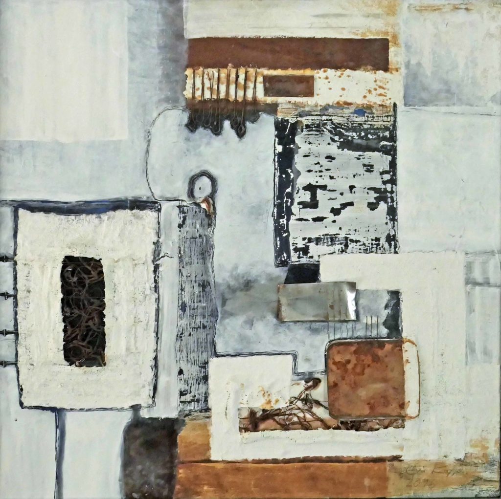 Pigmente und Wachs auf Leinwand, Collage, 70 x 50 cm
